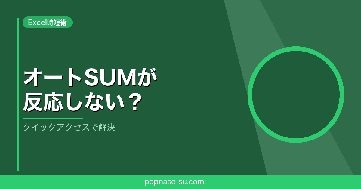 オートSUMが反応しない?クイックアクセスからの設定とショートカットの使い分け術 2025.05.152026.04.19 オートSUMが反応しない?クイックアクセスからの設定とショートカットの使い分け術 © 2025 Wataboushi. All Rights Reserved. リンク 📚 関連記事もチェック! 【Excel時短術】フラッシュフィルの使い方|Ctrl+Eで一瞬で完了 Excelのプルダウンリストの作り方|入力ミスをゼロにする設定手順 【Excel】XLOOKUP関数の使い方|VLOOKUPのエラー・列ズレを解決する方法 関連