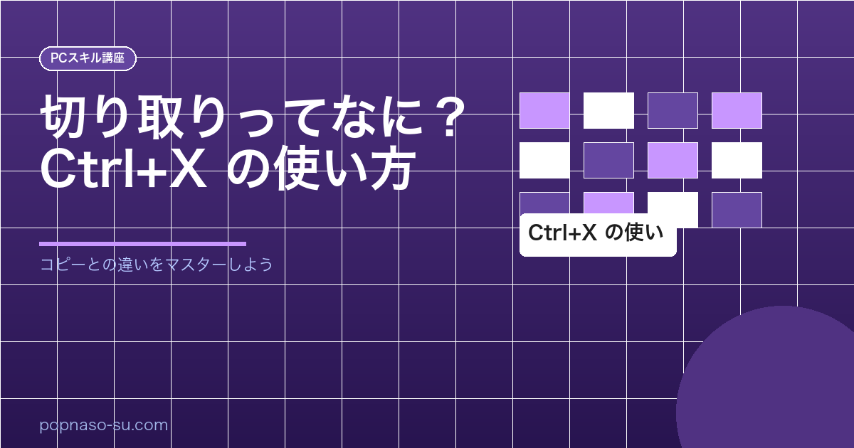 「切り取り」とは、選択した文字やデータを一旦取り除き、後で別の場所へ貼り付けるための操作です。Ctrl + X を使うと、コピーと同じく一瞬で操作ができ、作業効率が大幅にアップします。