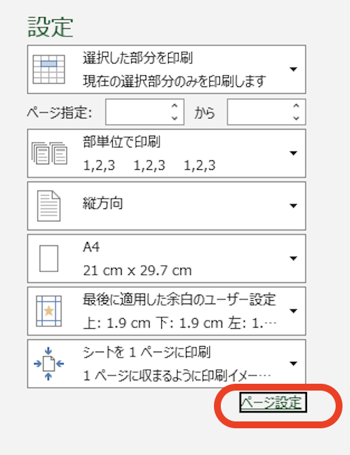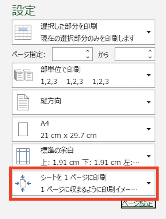 印刷設定で「セル範囲だけ印刷」や「ページに合わせて印刷」する方法