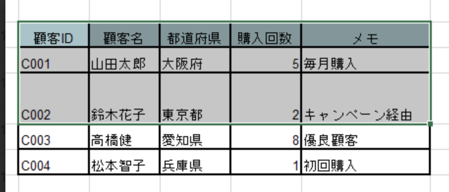 表の外枠を強調したい場合に便利。