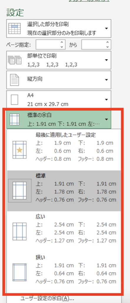 3. 「選択した範囲を印刷」を選ぶ