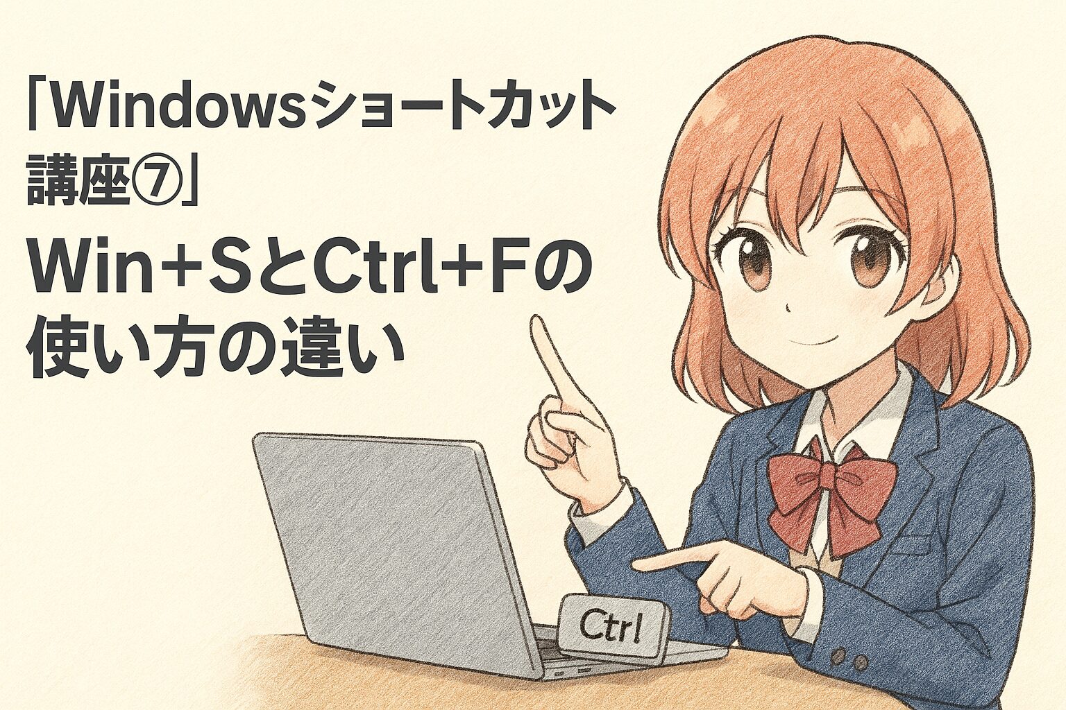 ◀ 前の記事:【Windowsショートカット講座⑥】パソコン全体を一瞬で検索!Win+Sの使い方